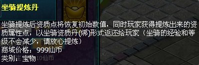 提炼资质点,锻造出的金龙属性将回到初始状态,建议到长安城的太上老君处先提炼出资质点再进行锻造。每次提炼需要消耗一颗坐骑提炼丹,可以在商城购买。