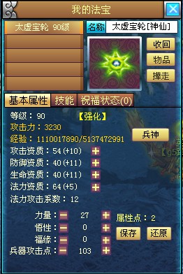 兵神等级达到60级后,玩家可以到【长安城】-【太白金星】购买轮回转生盘,使用后的兵神等级降 为1级,重新修炼的过程中,变每升2级可额外获得1点属性点,从而使其变得更加强大。