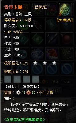 未强化,未镶嵌,未精炼的青帝佩增加的气血就接近4000,如果再稍加强化,仅仅这一件装备的血量就看比一个40多级的人物角色,如此强大的首饰果然不负东方天帝之名,熟悉游戏的玩家都知道,生命值是游戏中最关键的一项数值,看着90+级别的装备果然让人眼红耳热。 .jpg)