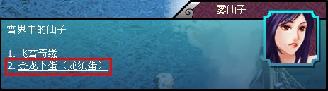 玩家在【大雪山】-【雾仙子】处对话,选择金龙下蛋,需要大雪山精华×3、银两×300000兑换龙须蛋(绑)×1。VIP月卡玩家每天可以兑换10个,普通玩家每天可兑换8个。玩家使用龙须蛋下线或换线几率仍然保留。