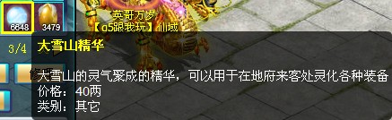玩家的装备有灵化的效果,到底如何才能提高呢。强大的大雪山精华再次登场,细心的玩家会发现大雪山精华的独特用处。那就是在【大雪山】的雪界圣女处灵化各种装备。目前灵化系统还没有问世,不过玩家可以提前收集大雪山精华,以备不时之需。