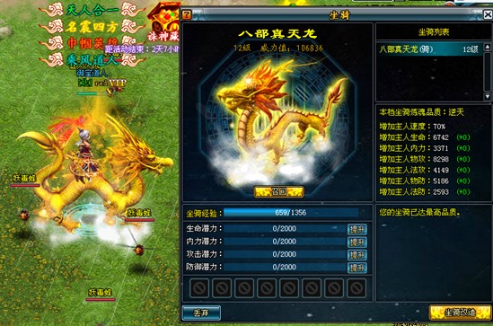 俗话说驾乘宝马才能感受生活,开着奔驰才能潇洒人间,没有法拉利就没脸进二环,不是保时捷就别往高速蹭……又有谁不想拥有一辆绝对拉风的名车呢?没有最疯狂只有更疯狂!在诛神世界里我们的大侠早已经把“空中客车”级的飞行坐骑买回家了—八部真天龙!