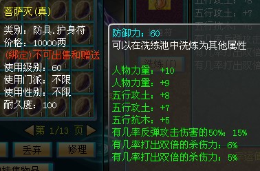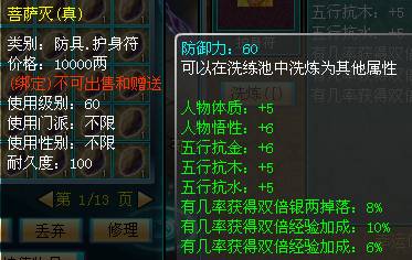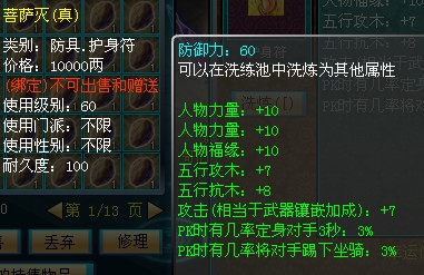 好的东西,太容易获得,即便官方不负责任的这样做了,玩家也不会答应。因此,对于护身符的获得,玩家还需要一个精心的收集过程。首先是原材料的收集,玩家在升级,打怪的时候,会有机会获得前8种排序的护身符。貌似很简单,也的确很简单,其实难的在最后两个护身符,因为它们的能力远优于其他8种护身符。最后两种护身符的获得,需要通过合成来实现。玩家必须集齐四种相应的护身符材料,如集合齐舍利子(仿)、木鱼鼓(仿)、金刚结(仿)、意念珠(仿)四种,则可合成菩萨灭(仿),而集齐四种(真)护身符则可以合成菩萨灭(真)的护身符,至于真仿的优劣,玩家自知。但倘若真的不好收齐,则仿的也无妨先用上一段时间。